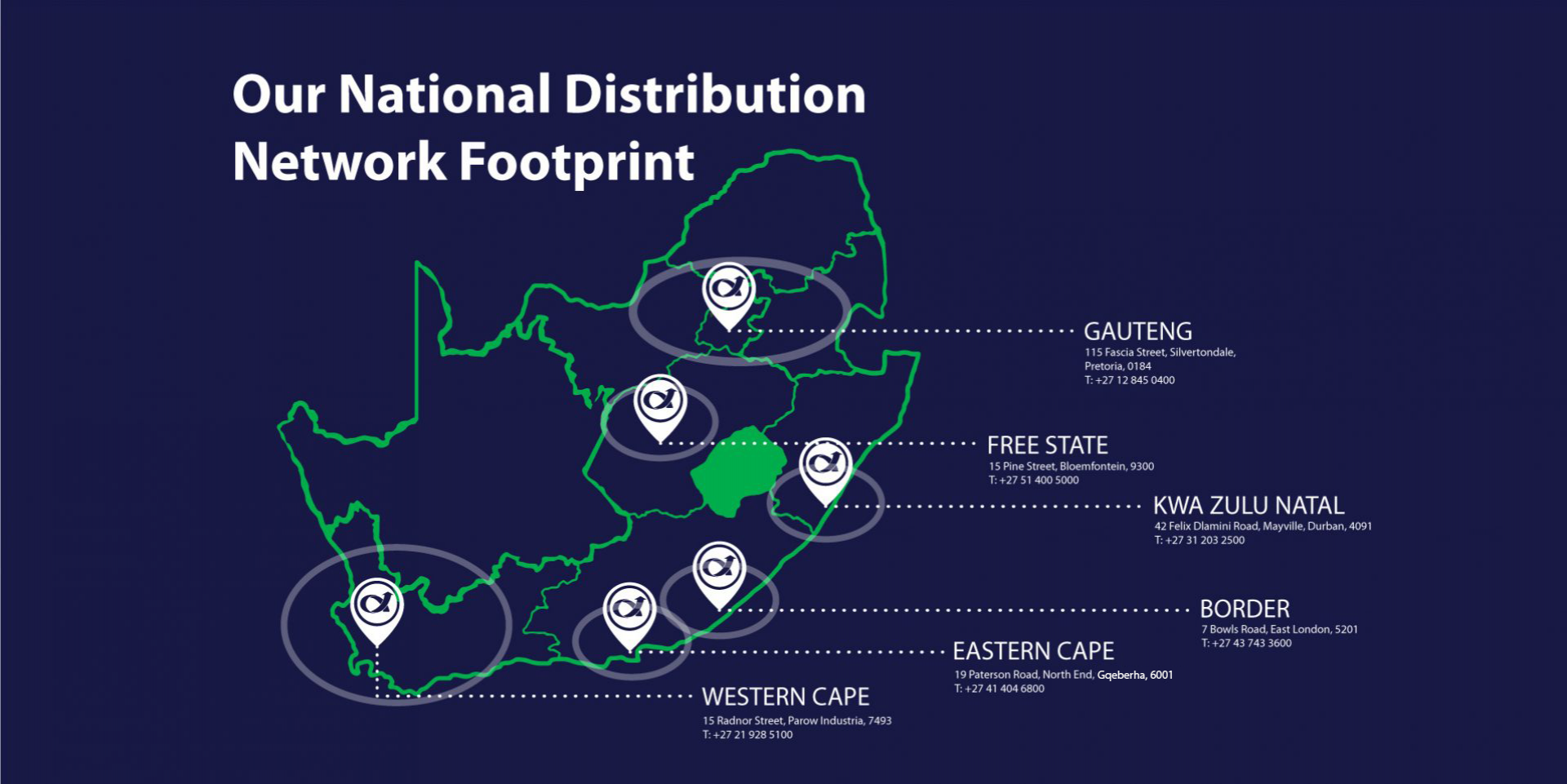 Our core corporate values of Care / Service / Value are echoed in our operational culture and our operational efficiency ensures products are received, stored, handled, dispatched and delivered to the highest standard and efficiency by our more than 800+ dedicated and professional Wholesale employees via our own fleet of over 70 vehicles and logistics partners. Our embrace of the best technology and systems ensure operational efficiency, accuracy and timeous delivery whilst our devotion to service and our clients reflects in our ever increasing Franchise and Corporate retail stores.
